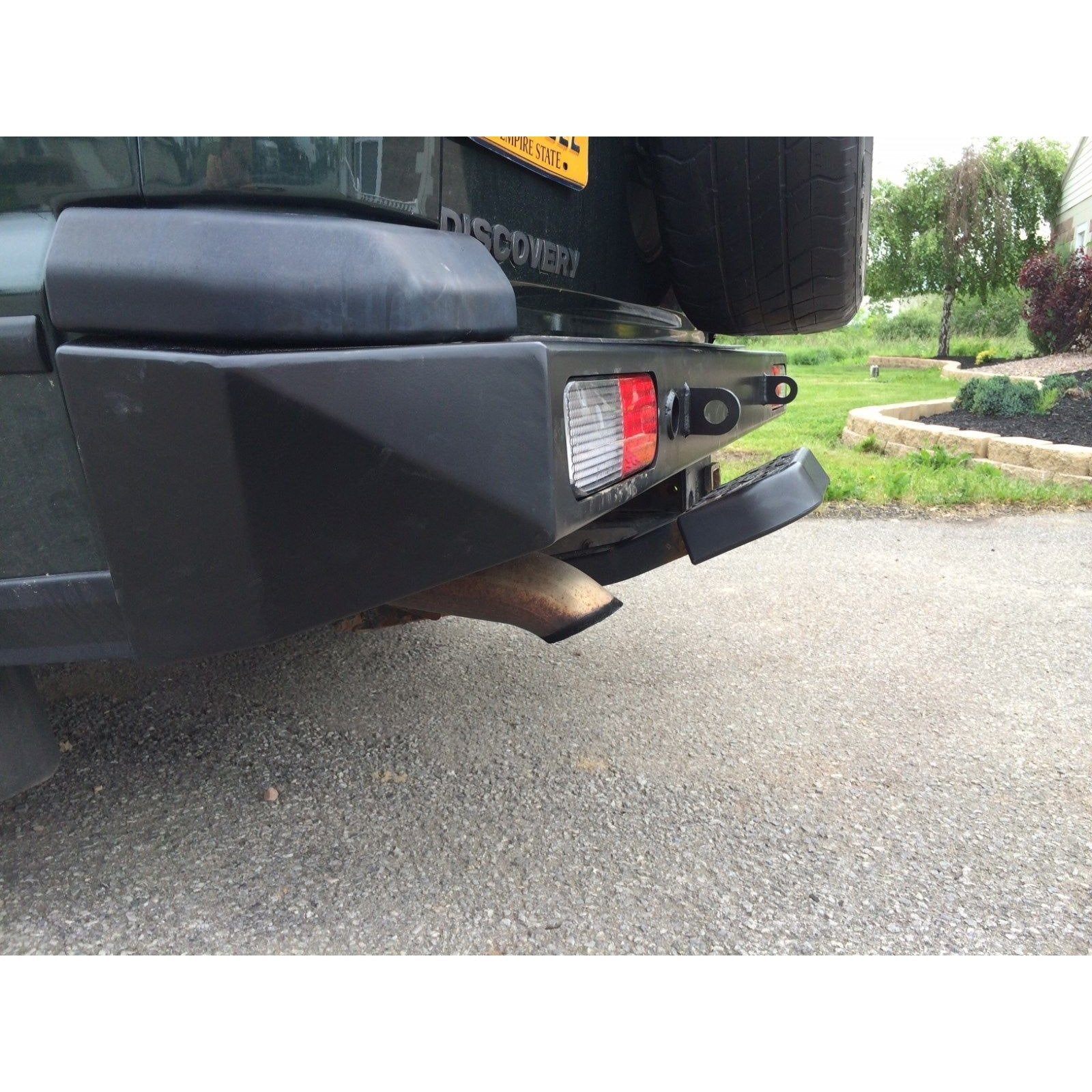 Finally we are able to provide the Land Rover community with a NEW cost effective rear bumper to fit Discovery II 2 99-04. This bumper is made of Heavy Duty steel, Powder Coated black and replaces the thin plastic factory bumper. Why replace with another plastic bumper that is just going to break again? Replace it for the last time with this one and be done with it. Installation requires no modification of your truck whatsoever. This bumper accepts the factory lights/turn signals and is also compatible with your tow hitch. It uses the same existing bolt holes as your stock bumper to make installation as easy as possible.